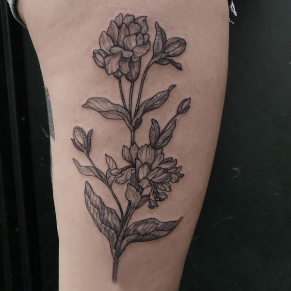 文艺花朵纹身 女生手臂上黑色纹身花朵图案