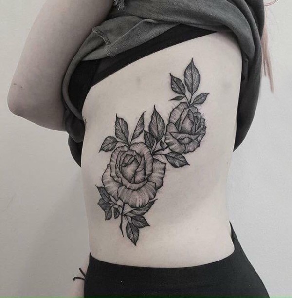 文艺花朵纹身 女生侧腰上文艺花朵纹身唯美图片