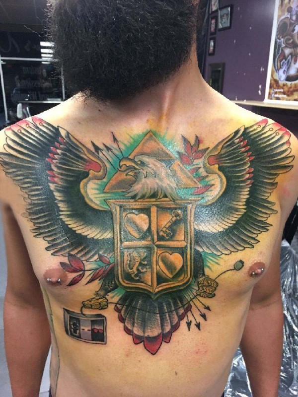 彩色老鹰纹身 男生胸部彩色老鹰纹身图片