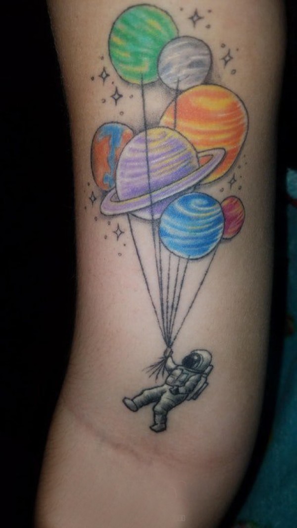 手臂纹身素材 女生手臂上星球和宇航员纹身图片