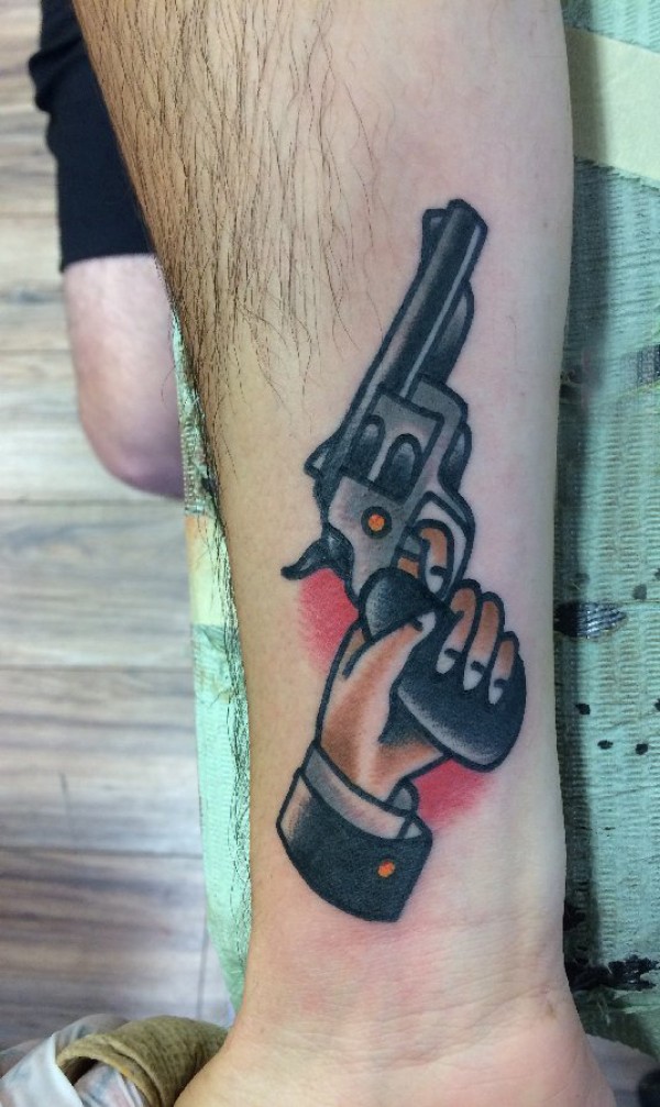 手臂纹身素材 男生手臂上枪和手纹身图片
