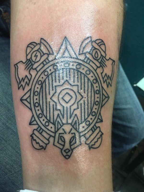 欧美小腿纹身 男生小腿上黑色的盾牌纹身图片