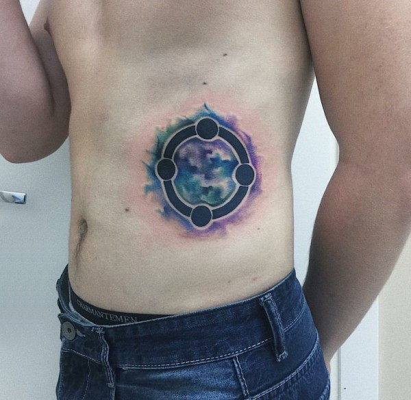 纹身侧腰男 男生侧腰上彩色的圆环纹身图片