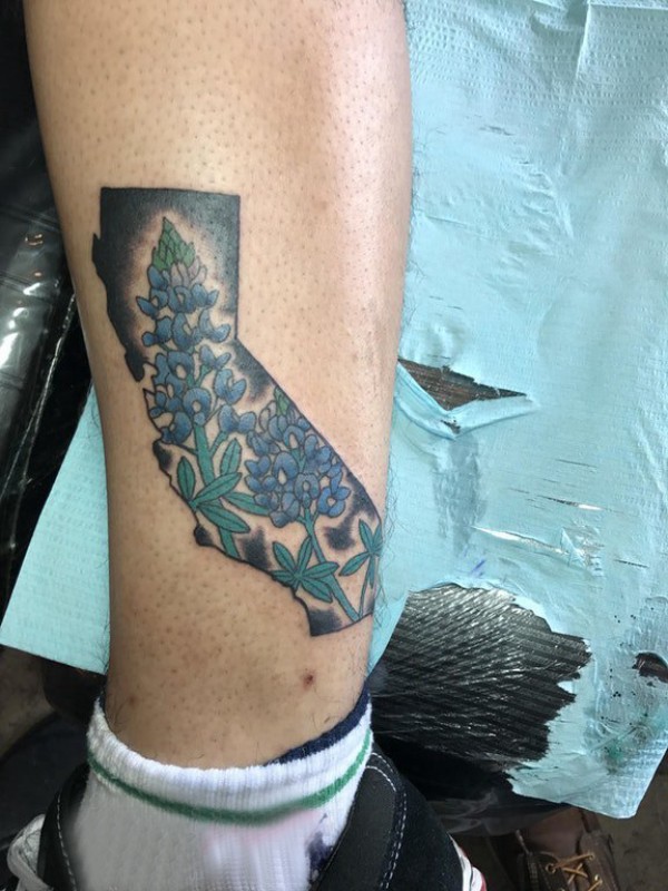 文艺花朵纹身 男生小腿上花朵纹身彩绘图片