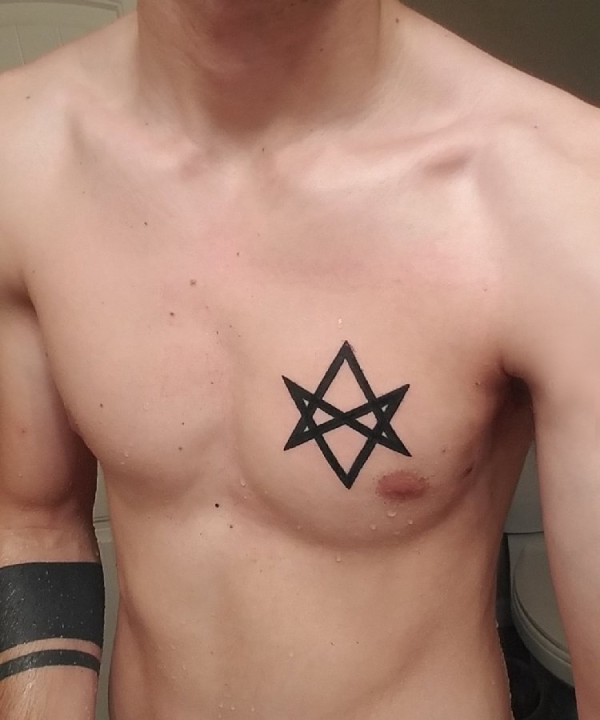 极简线条纹身 男生胸部黑色的几何纹身图片