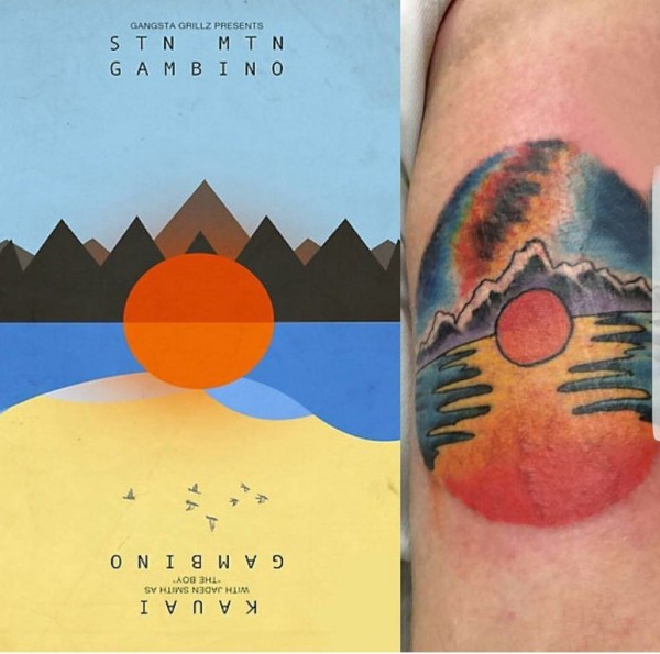 纹身风景 男生手臂上彩绘纹身风景图片