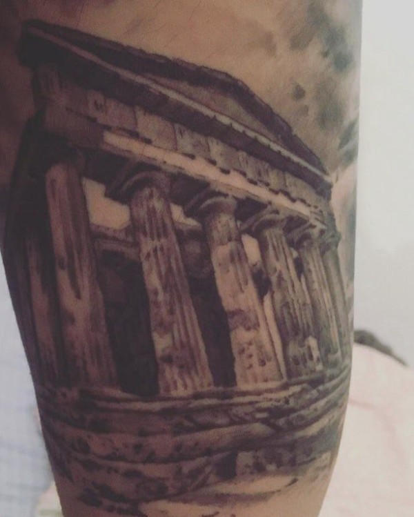 纹身大腿男 男生大腿上黑色的建筑物纹身图片