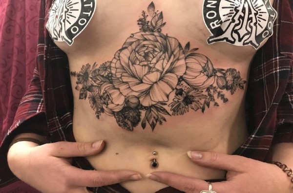 文艺花朵纹身 女生胸下文艺花朵纹身唯美图片