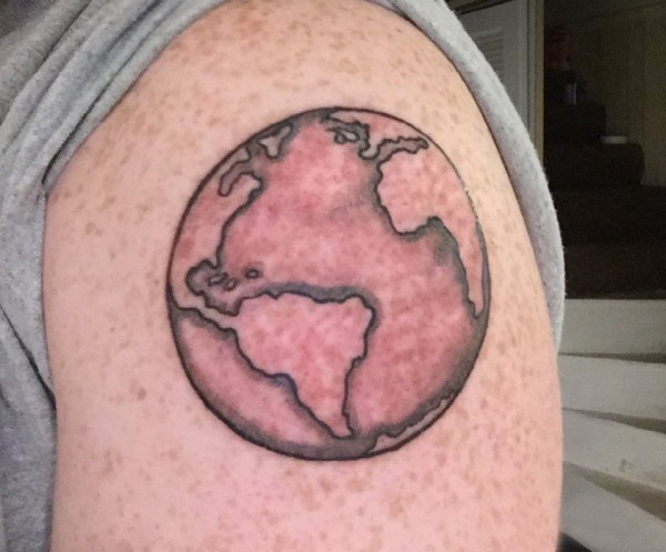 双大臂纹身 男生大臂上黑色的地球纹身图片