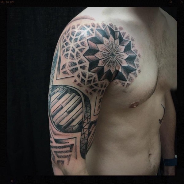 双大臂纹身 男生大臂上黑色的DNA和几何纹身图片