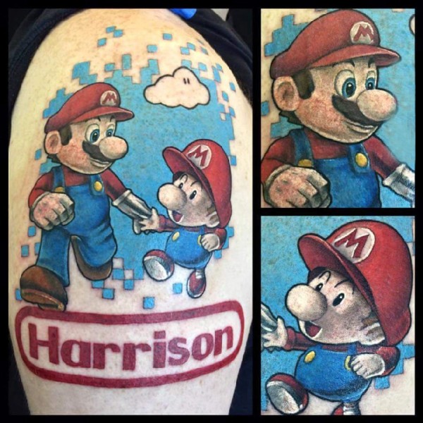 超级玛丽纹身 男生大臂上英文和超级玛丽纹身图片