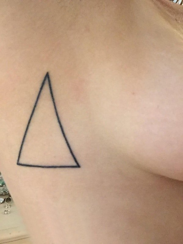 侧腰纹身图 女生侧腰上黑色的三角形纹身图片