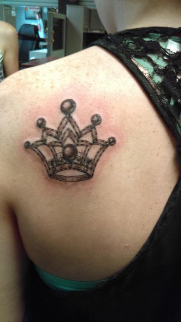 纹身皇冠简单 女生背部黑灰纹身皇冠简单图片