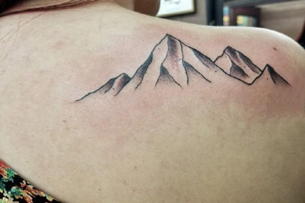 纹身后背女 女生后背上黑色的山脉纹身图片