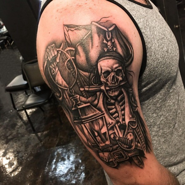 骷髅纹身 男生手臂上恐怖纹身骷髅图片