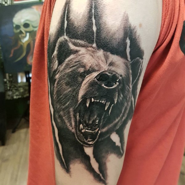 百乐动物纹身 男生手臂上黑色的熊纹身图片
