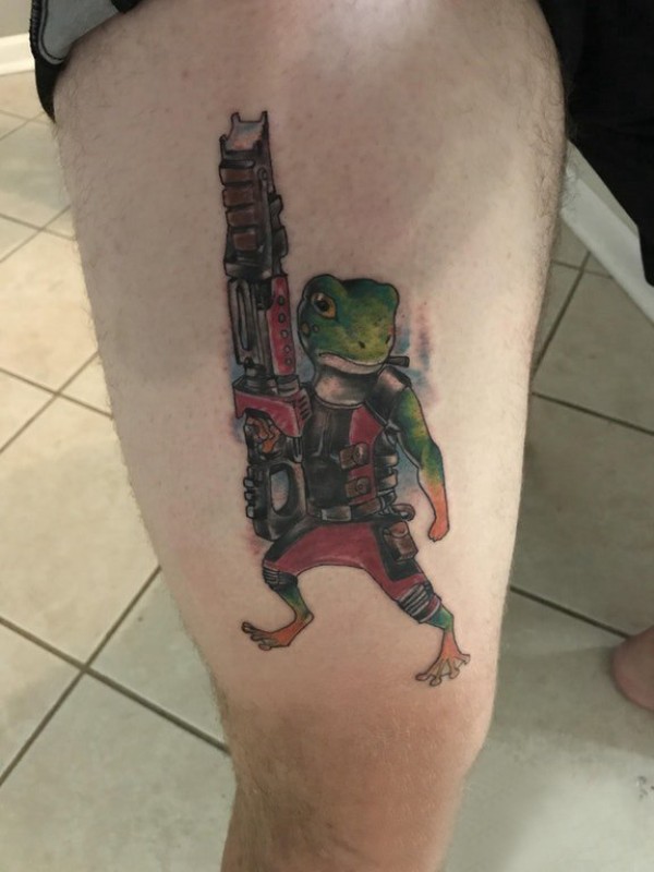 百乐动物纹身 男生大腿上彩色的青蛙纹身图片