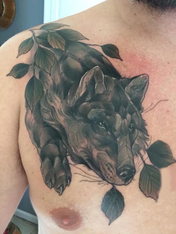 纹身狼图案 男生胸部纹身狼图案
