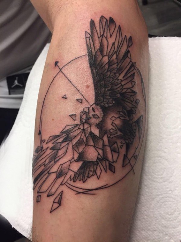 纹身老鹰图案 男生手臂上黑灰纹身老鹰图案