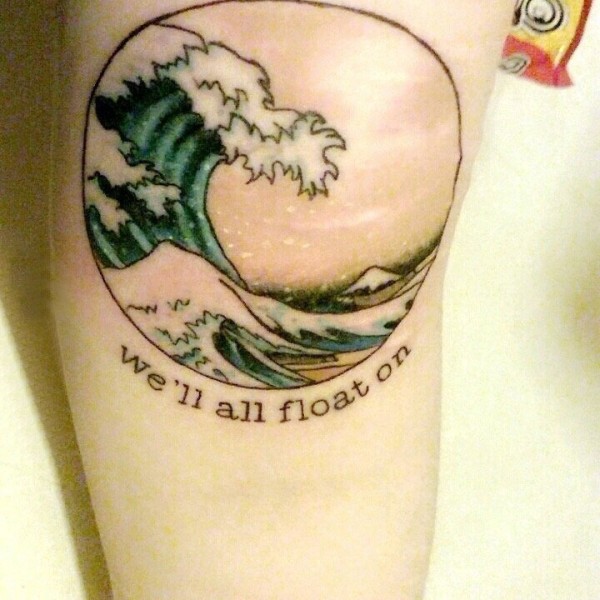 纹身浪花 女生大腿上彩绘纹身浪花图片