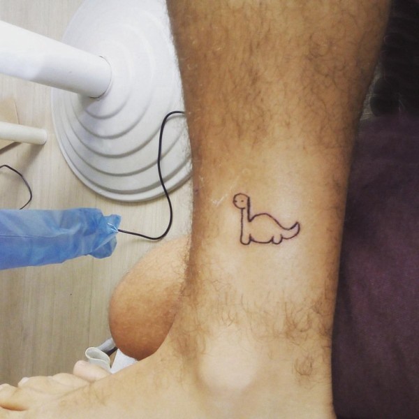 纹身卡通 男生小腿上黑色的恐龙纹身图片