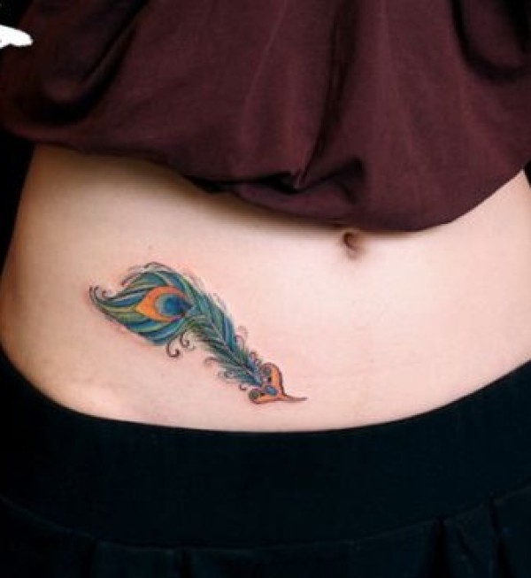美女腹部天使翅膀羽毛图案纹身