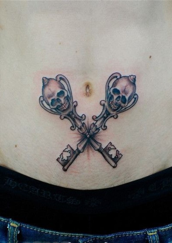 女孩子们性感腹部上漂亮的纹身图案