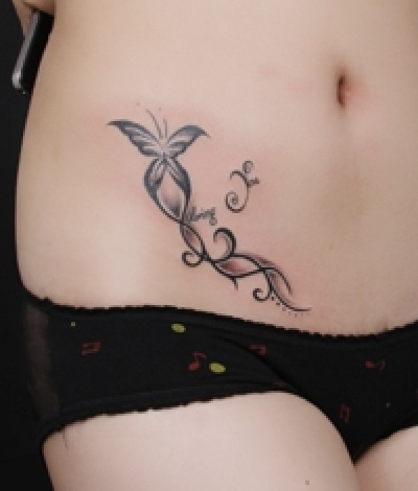后肩唯美花藤英文图案图片_植物纹身图案大全_纹身图吧