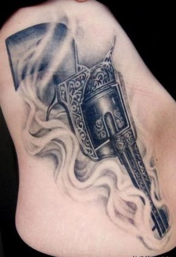 女生时尚腹部手枪图案纹身