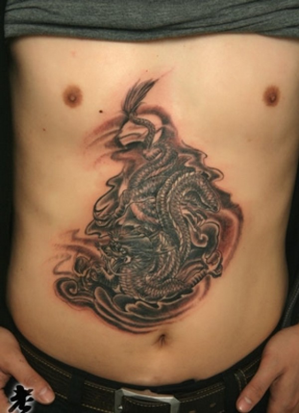 龙纹身手稿_一组老传统黑灰龙手稿纹身图案