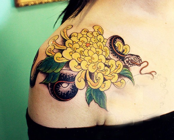 后肩唯美花藤英文图案图片_植物纹身图案大全_纹身图吧