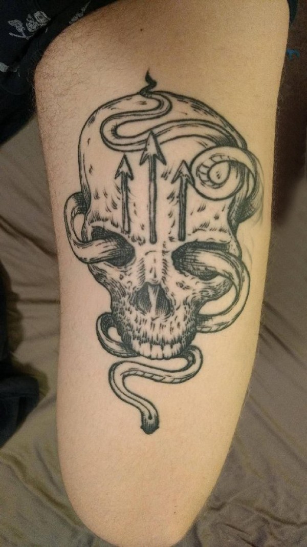 蛇纹身 男生手臂上蛇纹身骷髅头图片