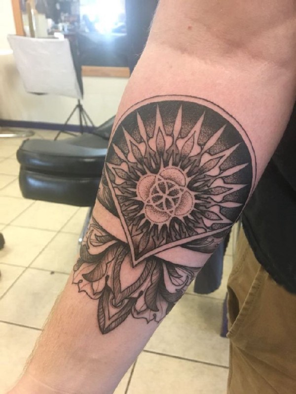 纹身曼陀罗 男生手臂上黑色的曼陀罗纹身图片