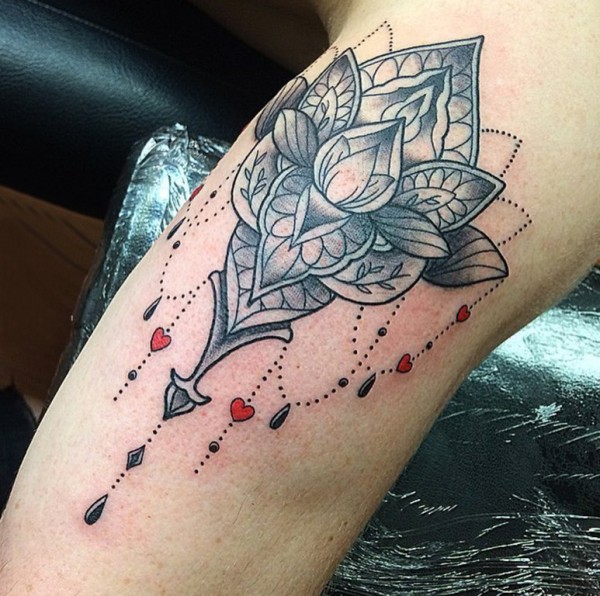 纹身莲花 女生手臂上黑灰纹身莲花图片