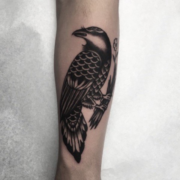 纹身动物 男生手臂上黑色的鸟纹身图片