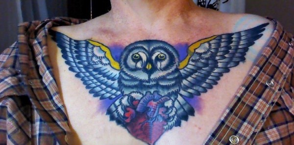 纹身猫头鹰 男生锁骨下动物纹身猫头鹰图片