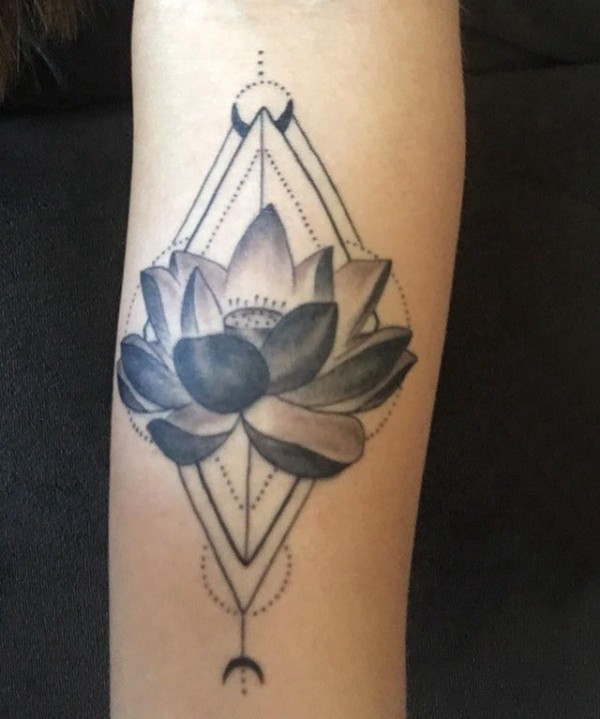 纹身莲花 女生手臂上黑色的莲花纹身图片