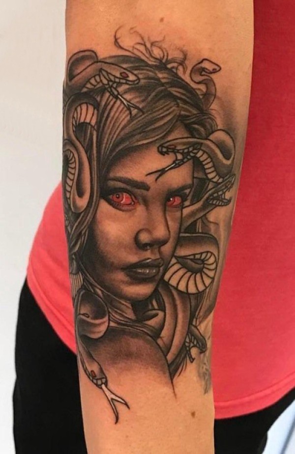 女生人物纹身图案 男生手臂上人物肖像纹身黑灰图片