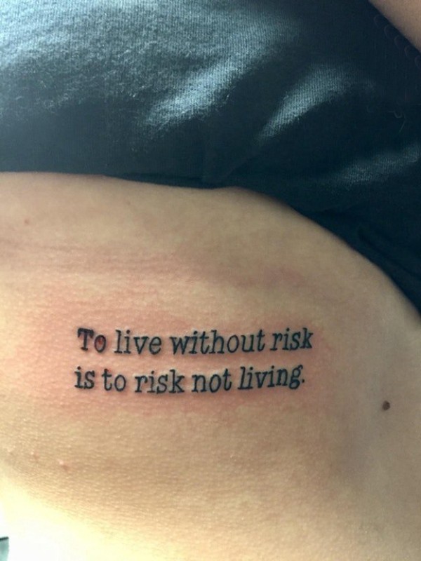极简线条纹身 女生侧腰上黑色的英文纹身图片