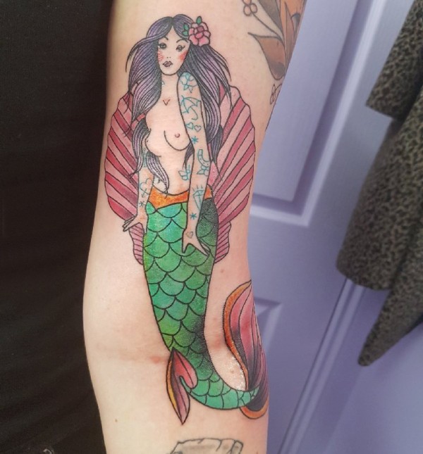 纹身美人鱼图案 男生手臂上彩绘纹身美人鱼图案