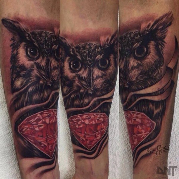 纹身猫头鹰 男生手臂上素描纹身猫头鹰图案