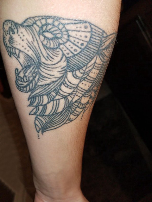 极简线条纹身 男生手臂上黑色的熊纹身图片
