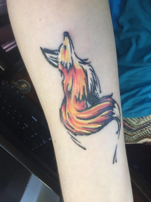 百乐动物纹身 女生手臂上彩色的狐狸纹身图片