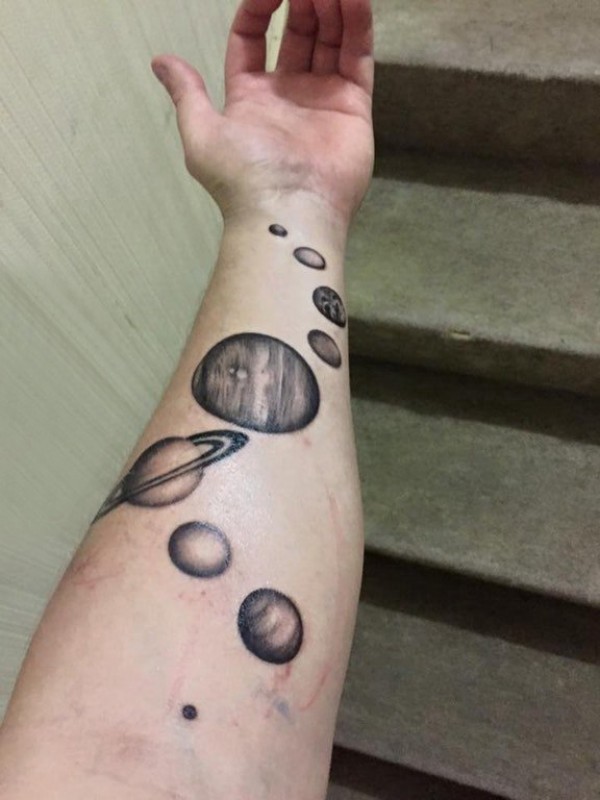 纹身黑色 男生手臂上黑色的星球纹身图片