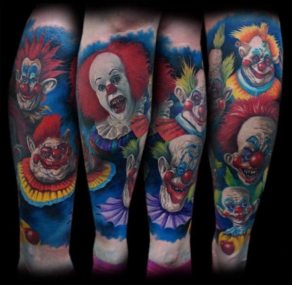 手臂纹身素材 男生手臂上彩色的小丑纹身图片