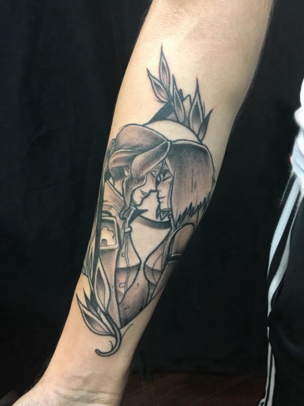 人物肖像纹身 男生手臂上植物和情侣纹身图片