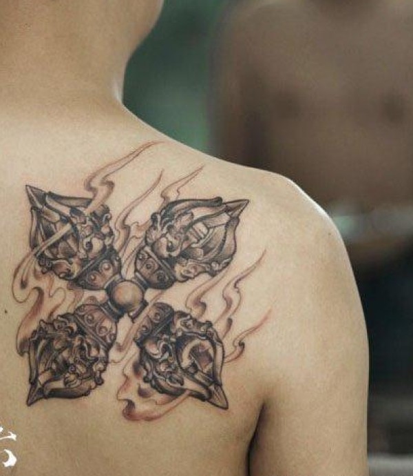 女生肩花纹身_15张女性双肩对称的肩花纹身图案作品图片