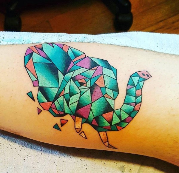几何动物纹身 男生手臂上彩色的大象纹身图片