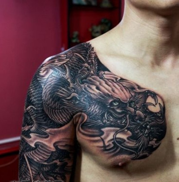 深受男士喜爱的披肩龙纹身