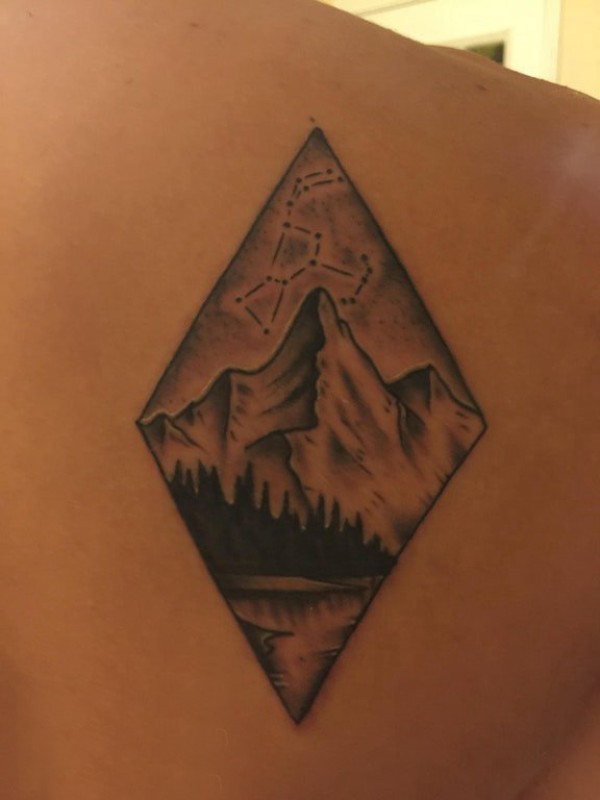 纹身黑色 男生后背上黑色的山脉纹身图片